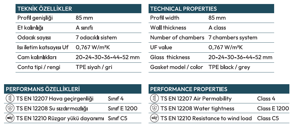 7 odacıklı, A sınıfı profilleriyle enerji verimliliğini artırırken dış gürültüyü azaltır.