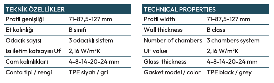 Sağlam profilleriyle uzun ömürlü dayanıklılık sunarken, sessiz ve akıcı hareketiyle konforlu bir kullanım sağlar.